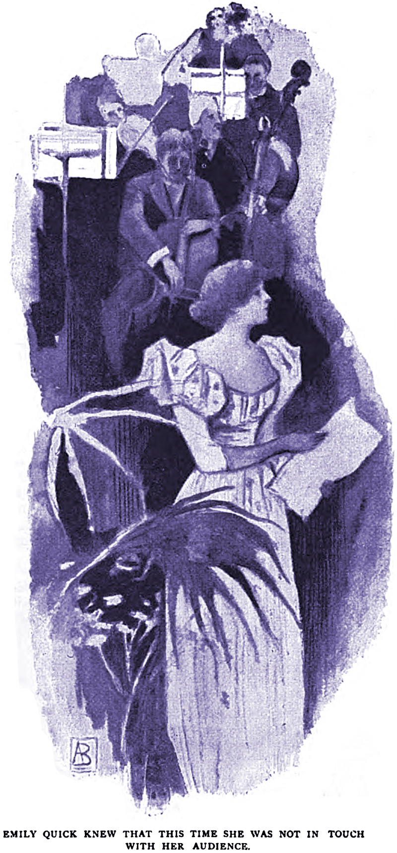 "Emily quick new that this time she was not in touch with her audience."  From English Illustrated, 1895.