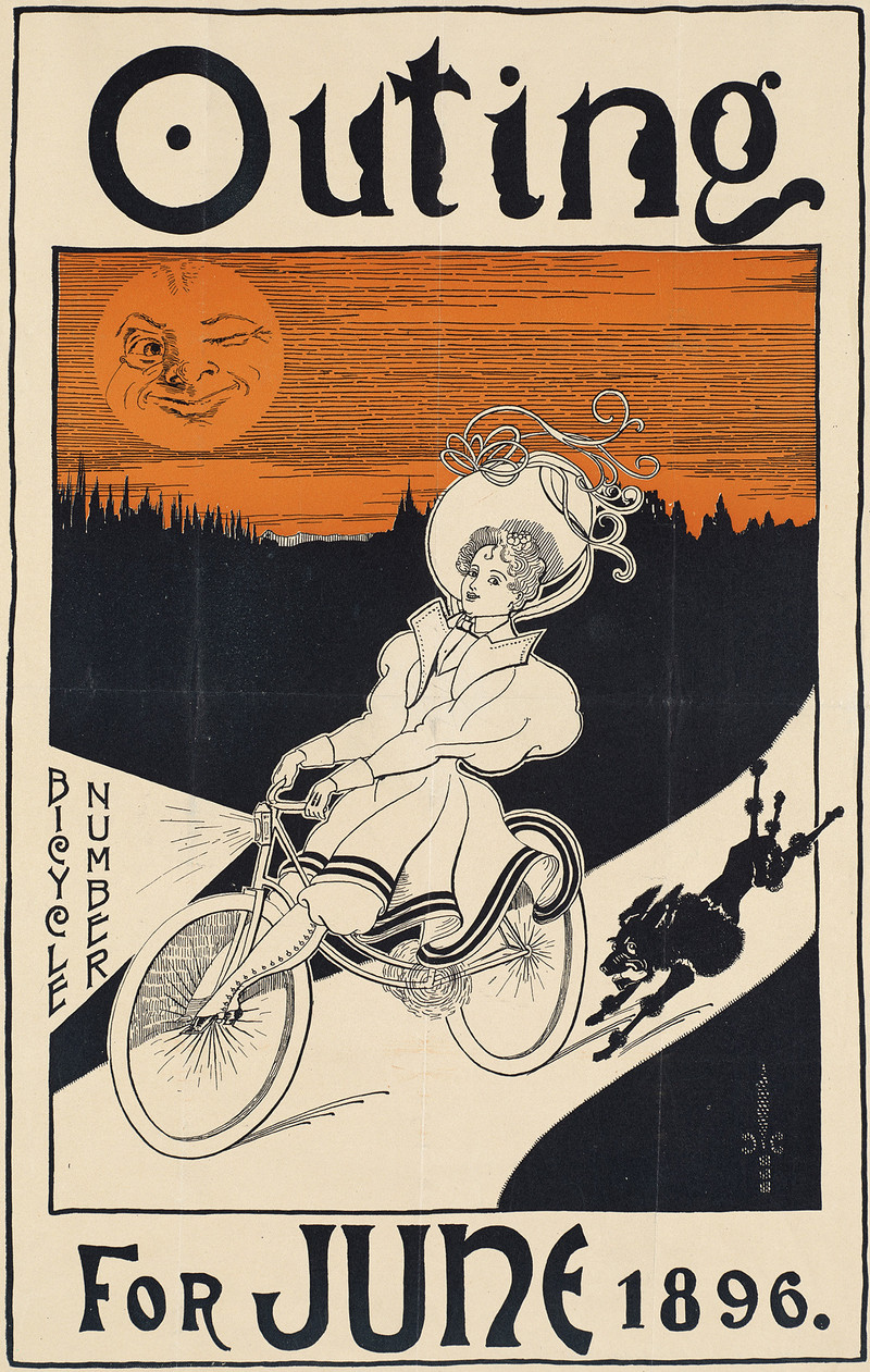 #vintage illustration #bicycle #full moon #dog #cycling #winking moon #outing #vintage magazine #illustration #magazine