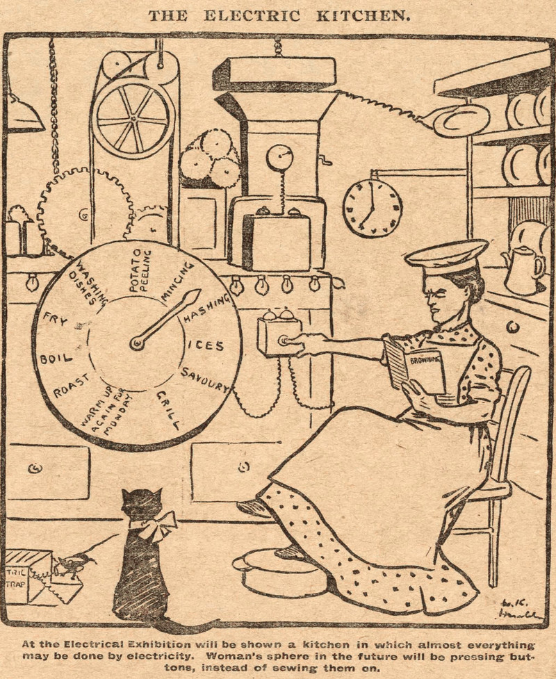 #vintage illustration #cat #invention #1900s #electricity #illustration #oven #kitchen
