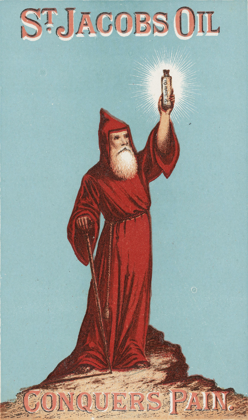 #vintage illustration #vintage ad #saint #pain relief #st. jacob #illustration #ad