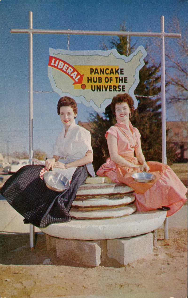 The pancake hub of the universe -- it may sound farfetched, yet physics posits a "cosmic pancake scenario" (composed of unrelaxed superclusters aligned along strings in which galaxies and clusters of galaxies are embedded, as per Schaeffer & Silk's "Large-Scale Inhomogeneities and Galaxy Statistics"), and in Buddhism, a cosmic pancake is one of the fundamental elements of the universe (see Chogyam Trungpa's Journey Without Goal, p. 137). Ironically, once you reach the Pancake Hub of the Universe in Liberal, Kansas, "you're not in Kansas anymore."