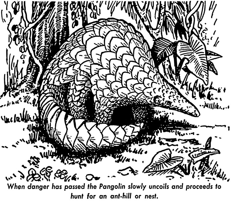 Pangolin.  From Reaching Our Goals by Horn, Goodykoontz & Snedaker and illustrated by Cleveland Woodward, 1940.