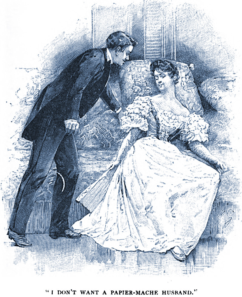 Admittedly, his complexion is rather pasty.  "I don't want a papier-mache husband."  From English Illustrated, 1894.