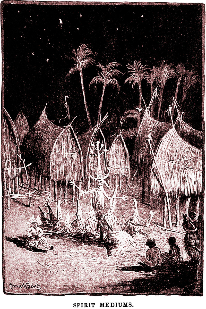 Spirit mediums from The Land of the Hibiscus Blossom: A Yarn of the Papuan Gulf, written and illustrated by Hume Nisbet, 1888.