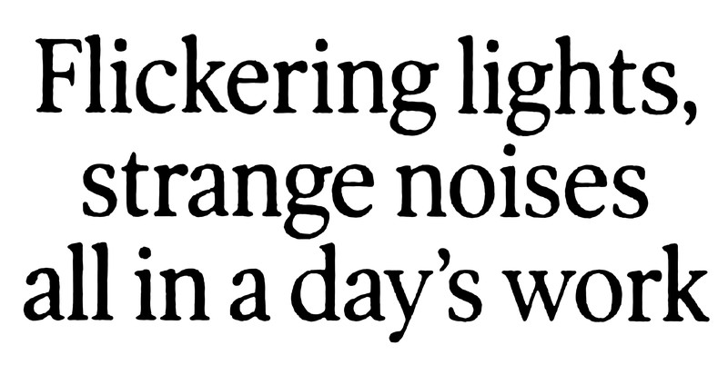Same here.  "Flickering lights, strange noises all in a day's work."  Via UFO Newsclipping Service, 2000.