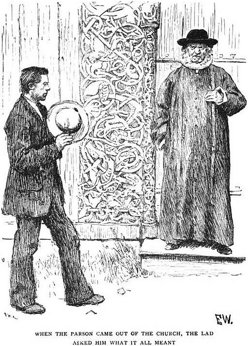 "When the parson came out of the church, the lad asked him what it all meant."  From Fairy Tales from the Far North by Peter Christen Asbjørnsen, 1897.