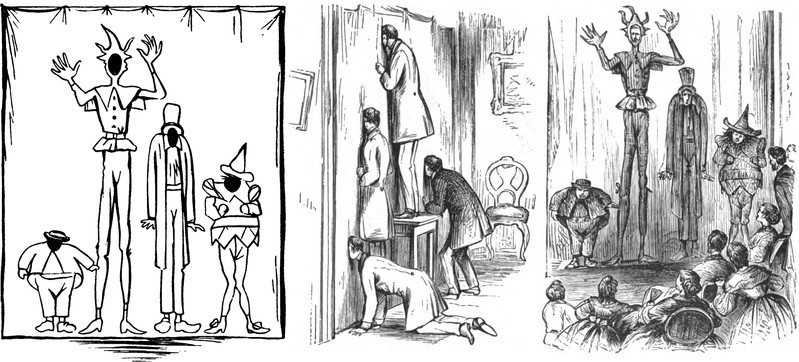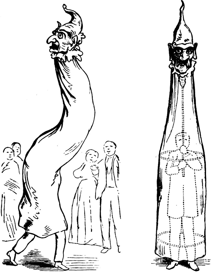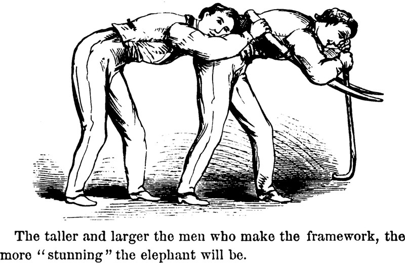 "The taller and larger the men who make the framework, the more 'stunning' the elephant will be." From What Shall We Do To-Night? by Leger D. Mayne, 1873.