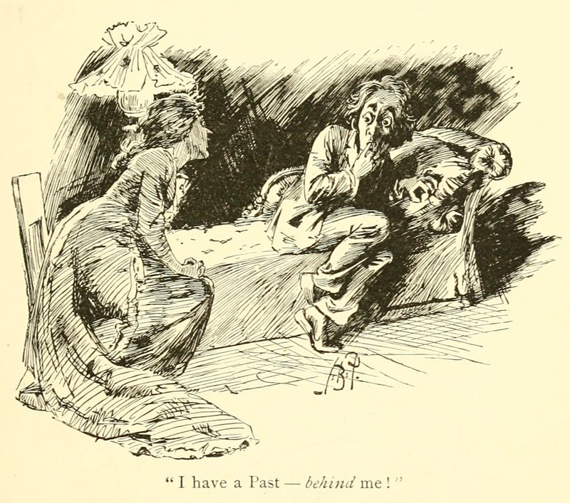 "I have a Past—behind me!"  From Mr. Punch's Pocket Ibsen by F. Anstey, 1803.