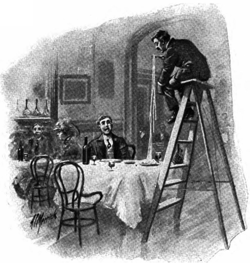 #vintage illustration #ladder #long spaghetti #highchair #italian restaurant #pasta