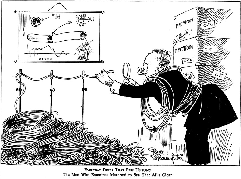 "The man who examines macaroni to see that all's clear."  From Life, 1928.