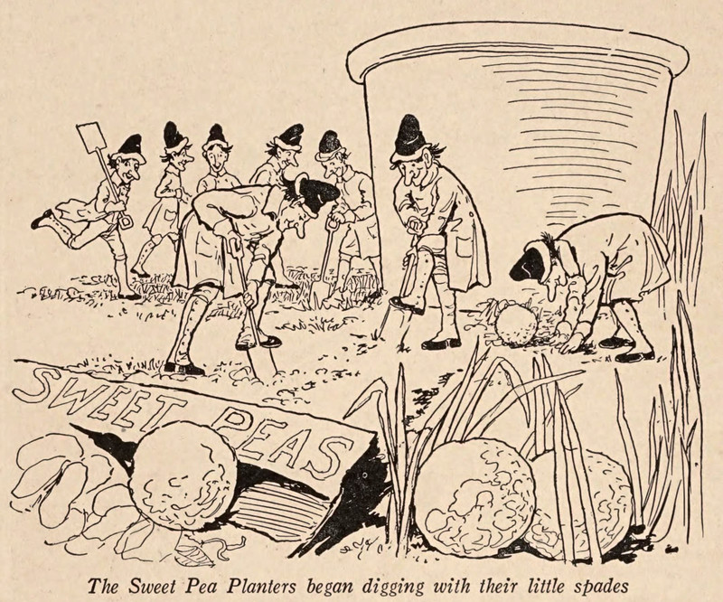 Revealed -- how peas are cultivated.  From Loraine and the Little People of Spring by Elizabeth Gordon and illustrated by Ella Dolbear Lee, 1918.