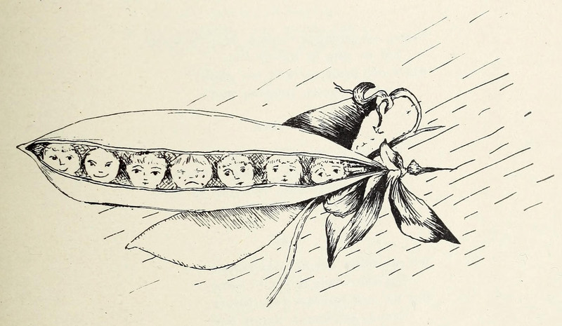 #vintage illustration #anthropomorphism #faces in things #1920s #illustration #vegetable people #poem #bean #pea