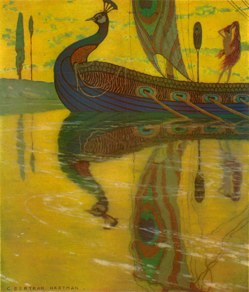 #vintage illustration #reflection #boat #peacock boat #art