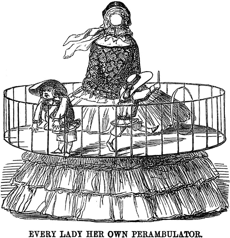 An illustration from an 1856 issue of Punch magazine.  The caption reads: "Every Lady Her Own Perambulator."