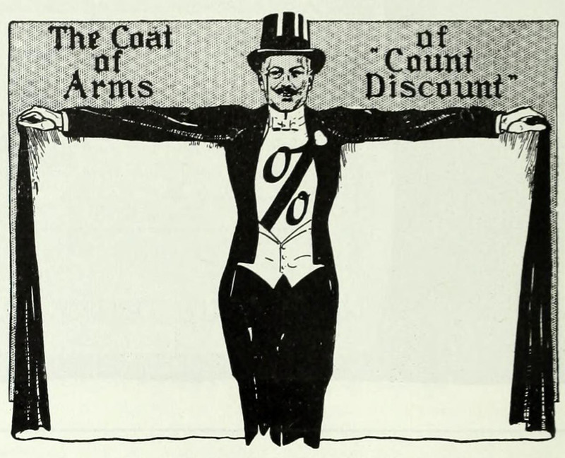 "The coat of arms of Count Discount."  From Dry Goods Review, 1914.