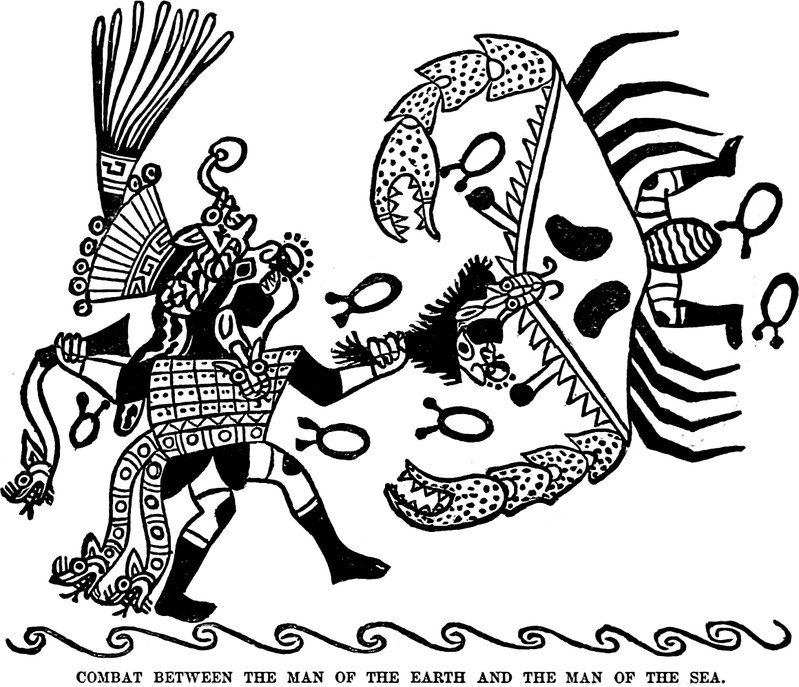 "Combat between the man of the earth and the man of the sea," from Peru: Incidents of Ravel and Exploration in the Land of the Incas by Ephraim George Squire, 1877.