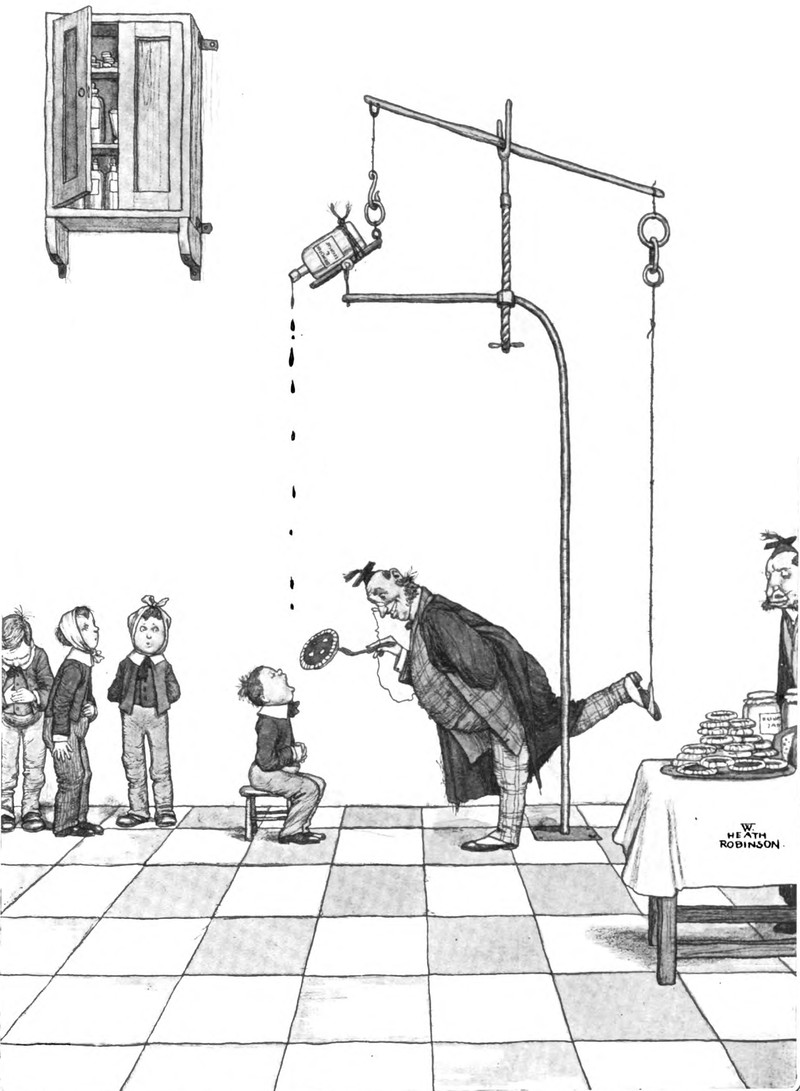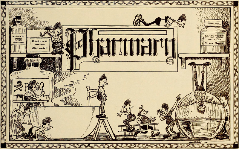 A pharmicist is making people small, decades before Steve Martin's comedy routine about getting "small" on placebo. From the University of Illinois at Urbana-Champaign's 1912 yearbook.