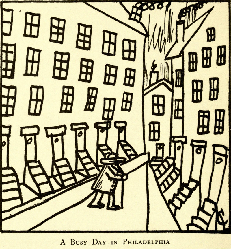 "A busy day in Philadelphia."  From The Simple Jography by Oliver Herford, 1908.