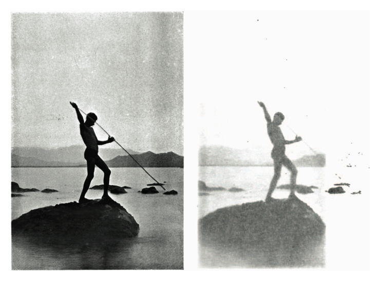 Pictured below, a page from our book featuring a portrait from The Confessions of a Beachcomber. Note that the fisherman’s ghostly spear pierces the veil to make contact with the material realm.