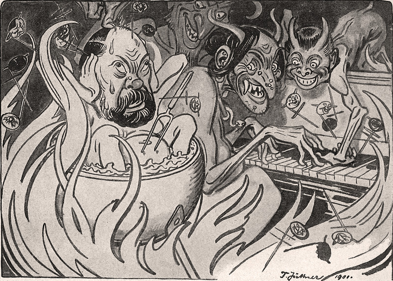 This cooking piano appeared in Punch, 1907. One could, of course, play the Minute Waltz to time a one-minute egg.