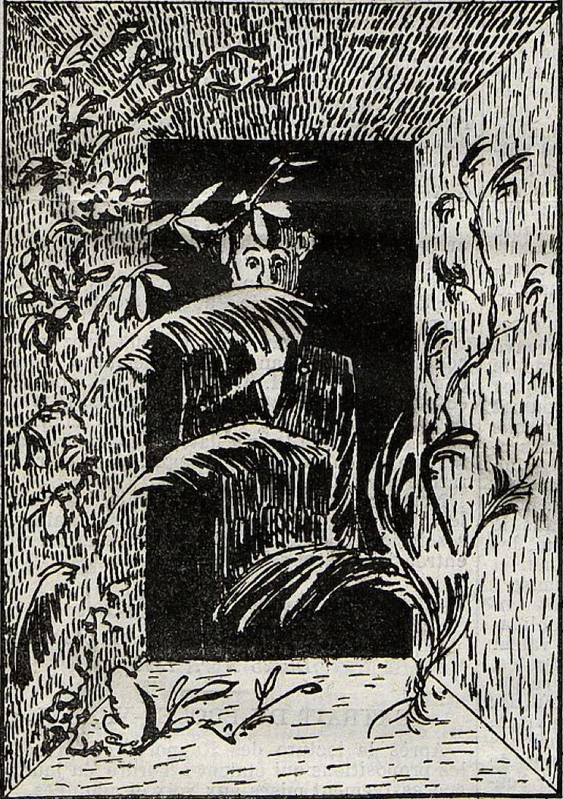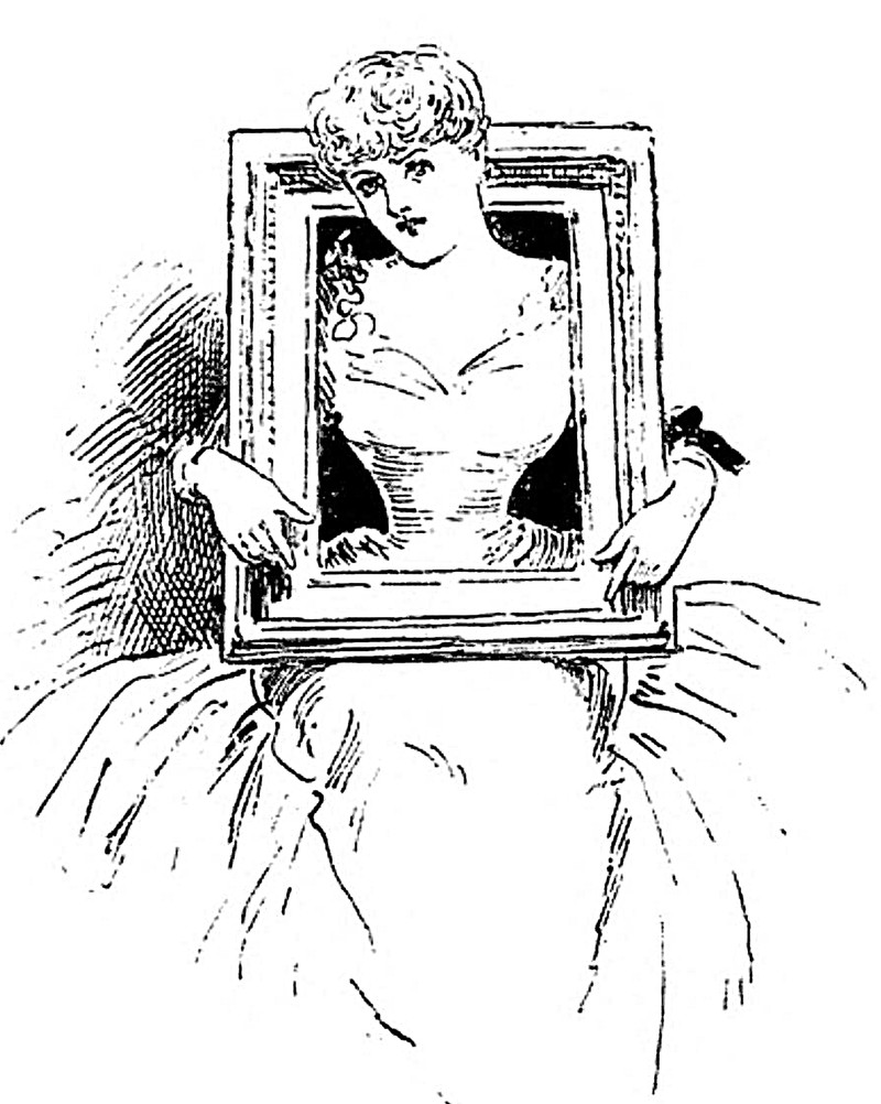 Great idea -- a living picture frame. One could affix air plants onto the wood with hot glue. It could also be a solution for bathroom mirrors, to help soften the shock of one's appearance. From Le Charivari, 1890.