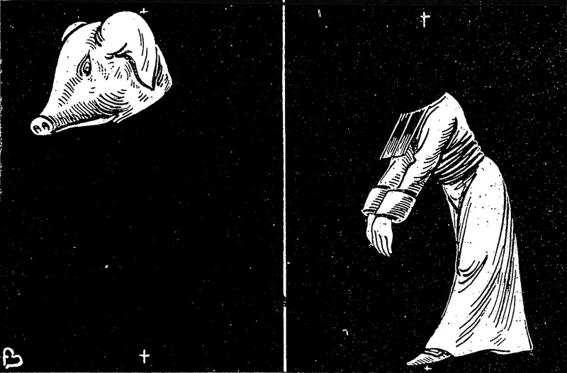 #religion #vintage illustration #severed head #floating head #pig #pig head