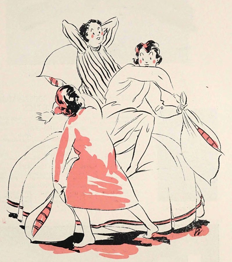 #vintage illustration #vintage yearbook #yearbook #illustration #pillow fight