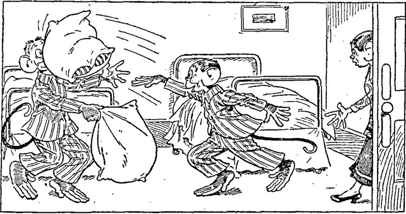 #vintage illustration #anthropomorphism #monkey #illustration #pillow fight