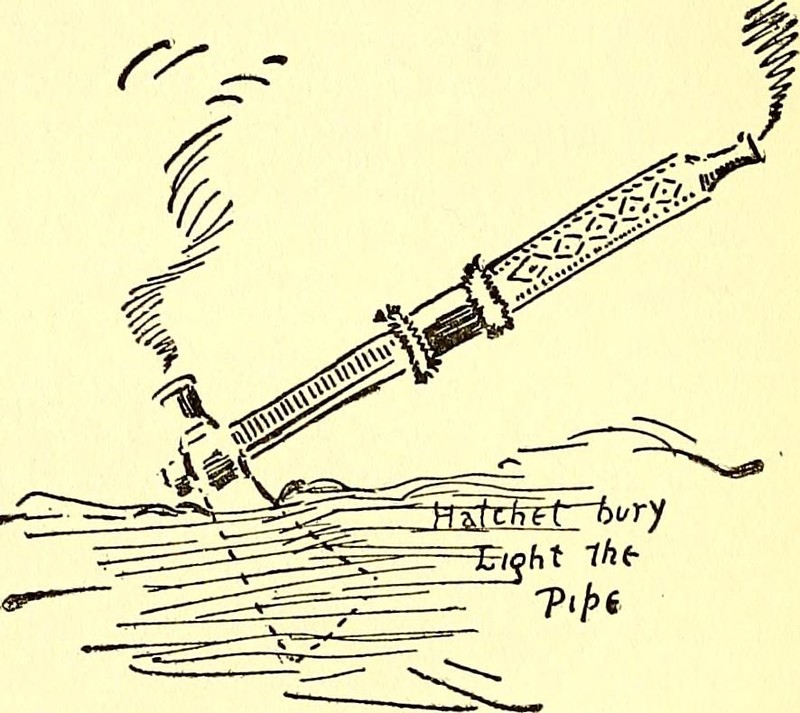 Burying the hatchet lights the pipe.  From Two Little Savages by Ernest Thompson Seton, 1922.