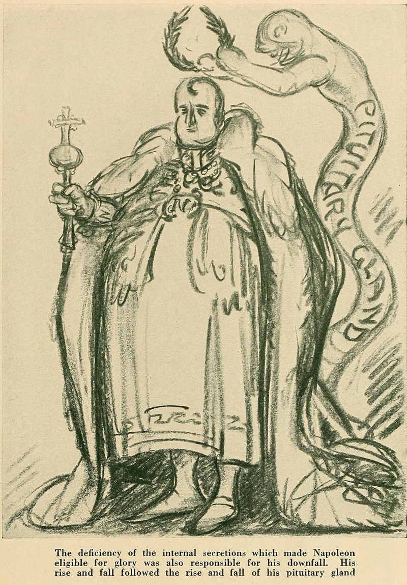 "The deficiency of the internal secretions which made Napoleon eligible for glory was also responsible for his downfall. His rise and fall followed the rise and fall of his pituitary gland." From Shadowland, 1922.