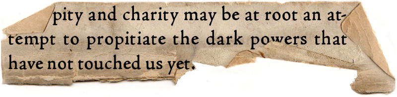 "Pity and charity may be at root an attempt to propitiate the dark powers that have not touched us yet." Marilynne Robinson, Housekeeping