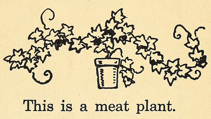 "This is meat plant."  From Preparatory Book to Accompany We Grow Up by Gates, Huber & Peardon, 1939.