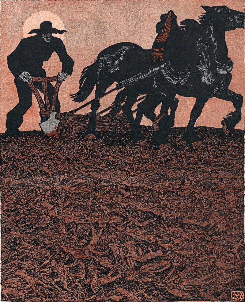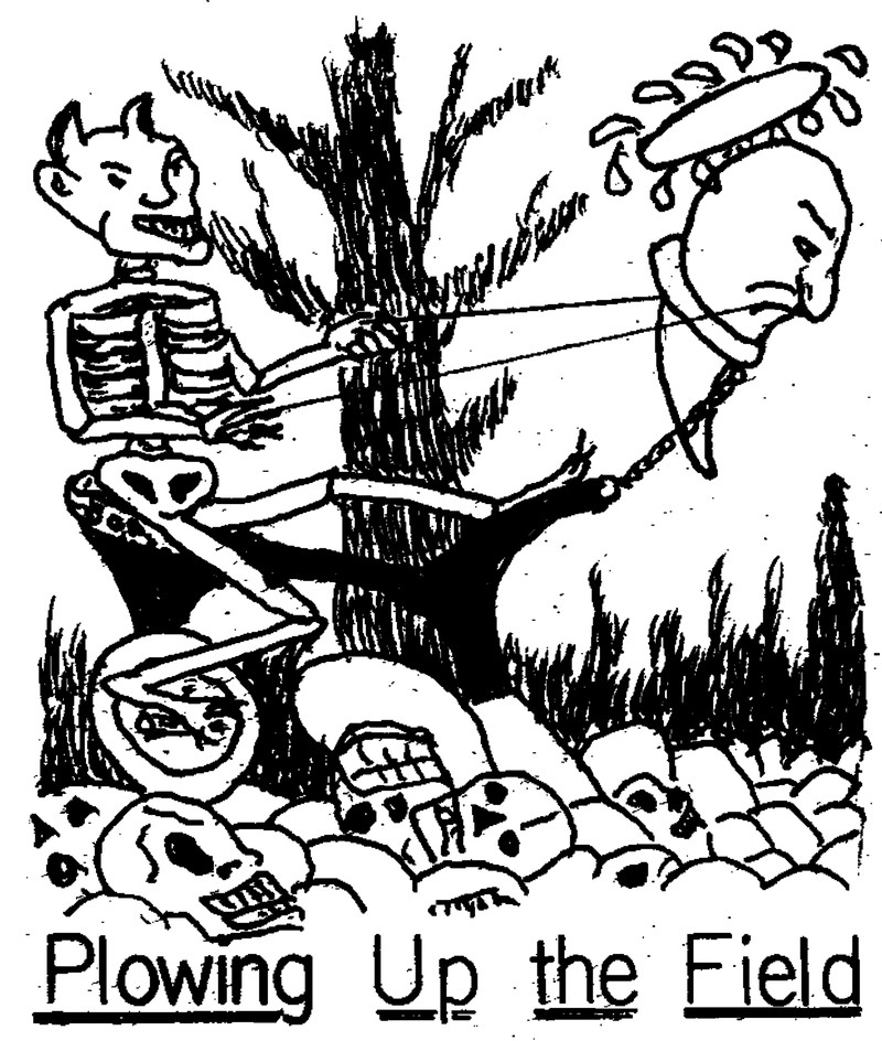 #vintage illustration #demon #macabre #skeleton #skull #grim reaper #plough