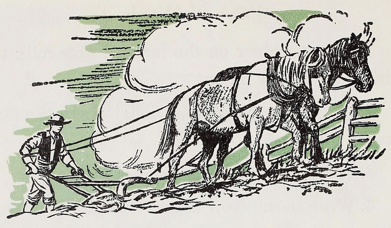 #vintage illustration #horse #1940s #farmer #illustration #plough