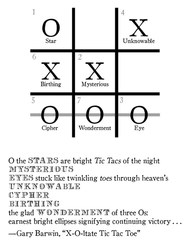 Our Tic Tac Toe generator builds stories out of the one-letter words X and O. Here's an example. To play along, see below for instructions and a link to a template.