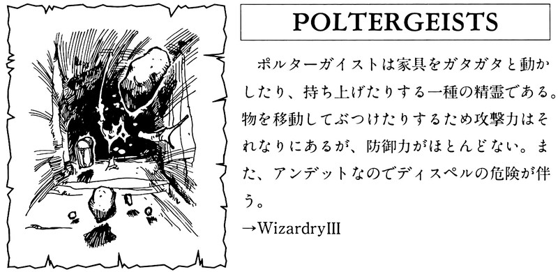 May poltergeists throw nothing your way today.  From Wizardry IV: The Return of Werdna Handbook.