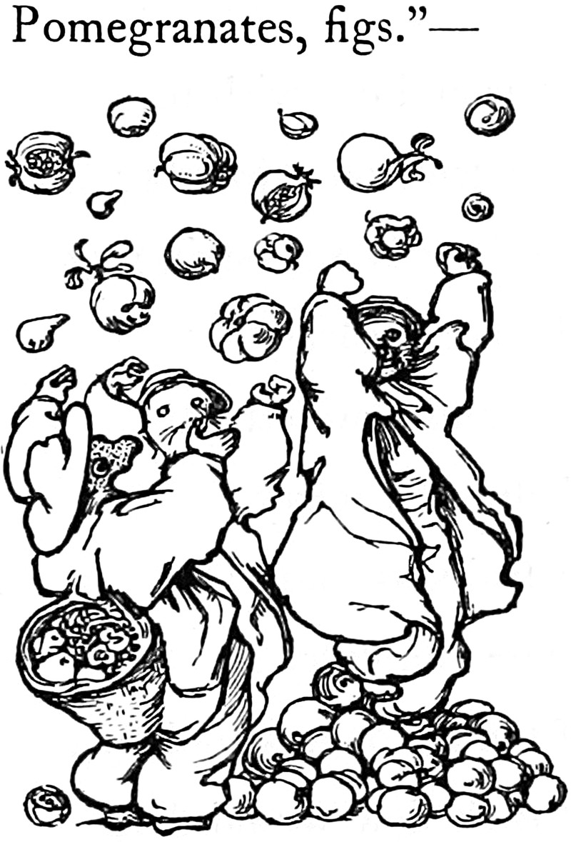 "Pomegranates, figs," from Goblin Market by Christina Georgina Rossetti and illustrated by L. Housman, 1893.