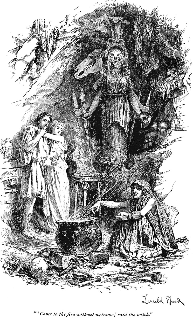 "'Come to the fire without welcome,' said the witch," from The Last Days of Pompeii by Edward George Bulwer and illustrated by Lancelot Speed, 1897.