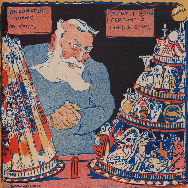 This is actually how Carmen Miranda's famous tutt-fruitti hat worked.  From L'Assiette au Beurre, 1905.