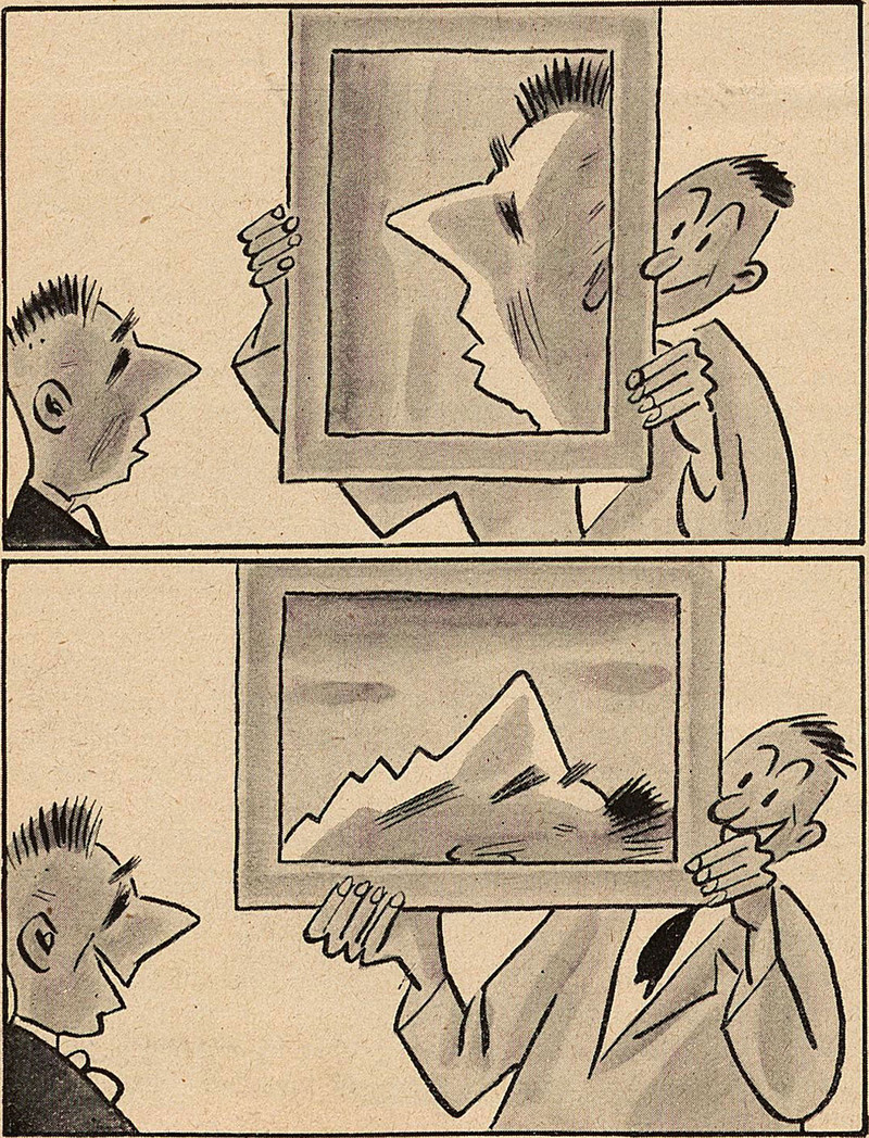 The difference between "portrait" and "landscape" orientation.  From Fliegende Blätter, 1940.