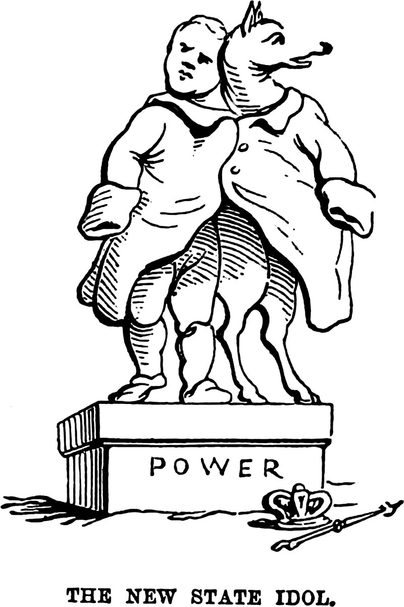 "The new state idol (power)," from England Under the House of Hanover by Thomas Wright and illustrated by F. W. Fairholt, 1868.