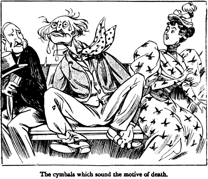 "The cymbals which sound the motive of death."  From Pick Me Up, 1893.