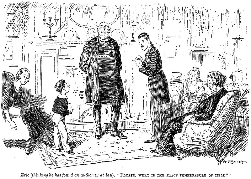 What is the exact temperature of Hell? From Punch, 1923. Speaking of which, what exactly are a snowball's chances in hell? See A Snowball's Chance in Hell.