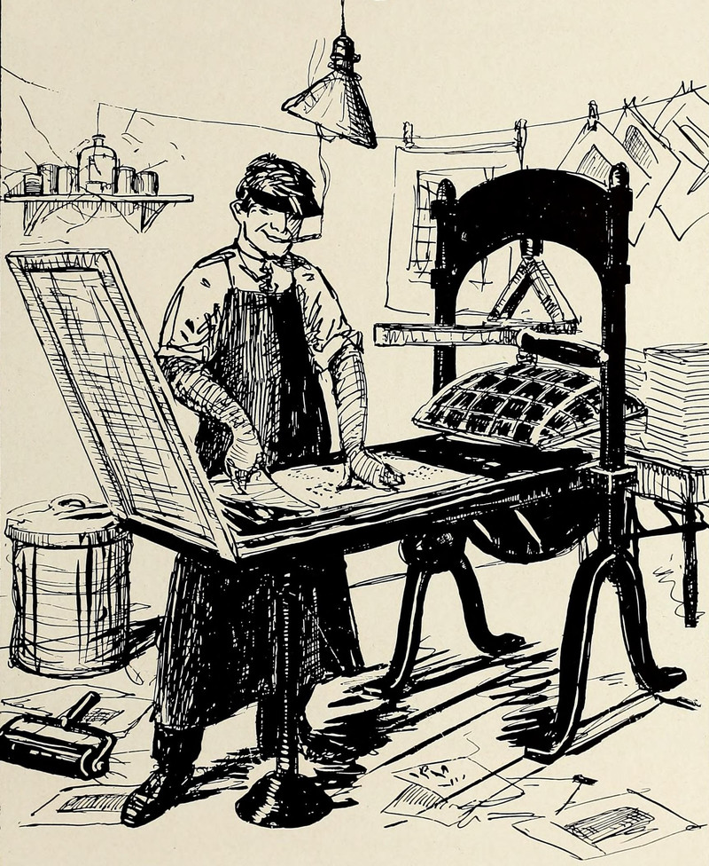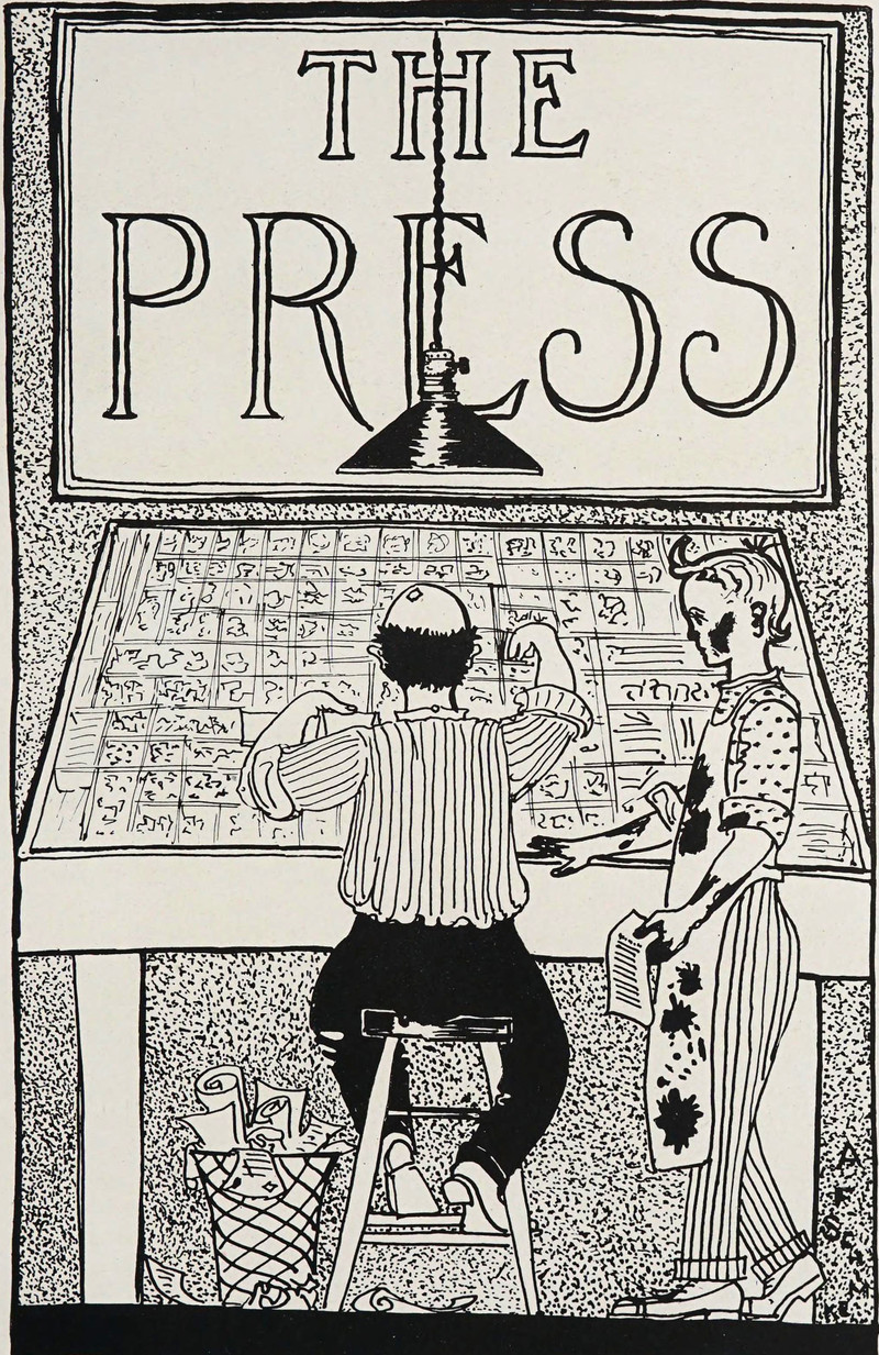 #vintage illustration #vintage yearbook #yearbook #illustration #printing press #1910s