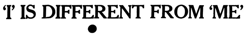 Note that an i's dot is at large beneath the headline.  "'I' is different from 'me.'"  From the Bombay Sunday Chronicle, 1950.