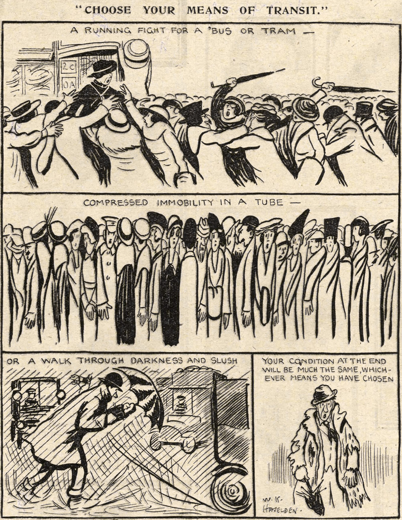 #vintage illustration #illustration #public transportation #crowded #1910s