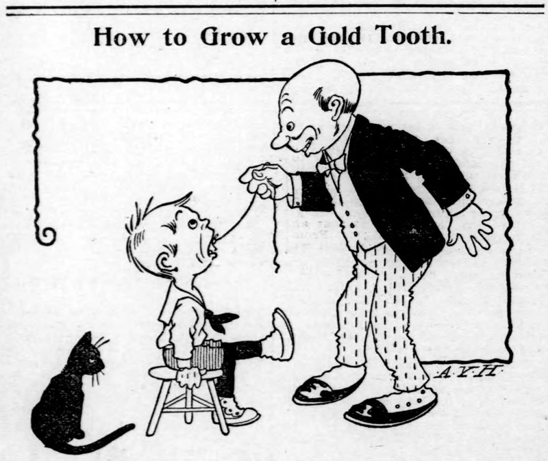 "How to grow a gold tooth."  From The Duluth Evening Herald, 1909.