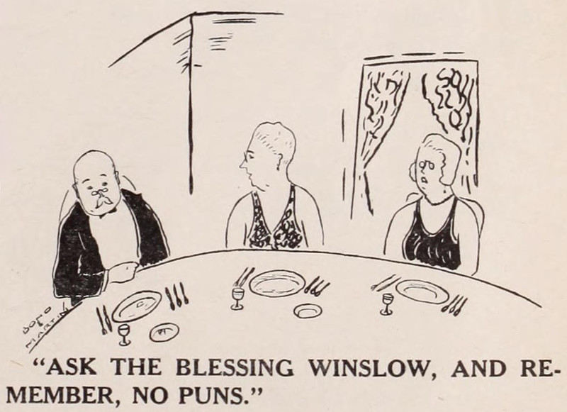 "Ask the blessing, Winslow, and remember, no puns."  From Lehigh Burr, 1932.
