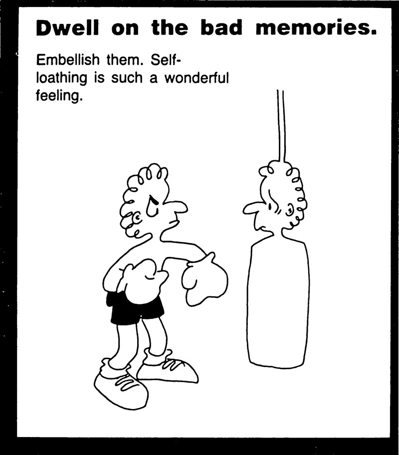 #vintage illustration #boxing #illustration #1980s #bad advice #self loathing #punching bag