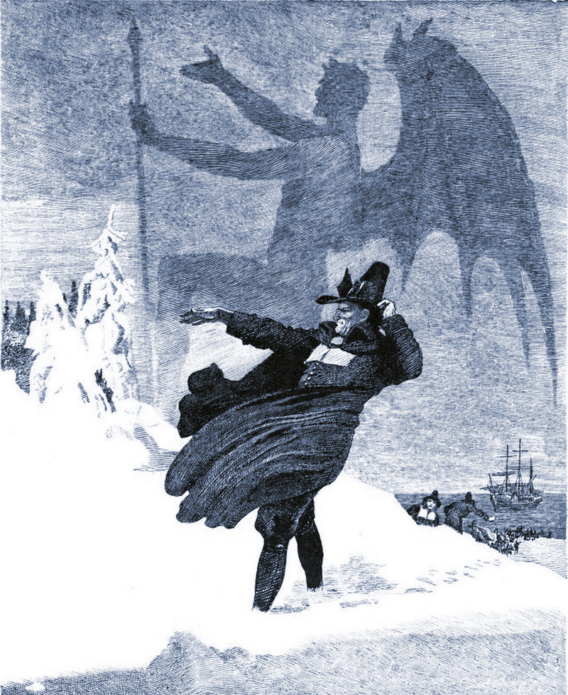 The more things change, the more they stay the same -- the Puritan's eyeline goes straight to woman's Bible (and he's presumably imagining "bookmarking a holy passage"). From Leslie's Sunday Magazine, 1887.